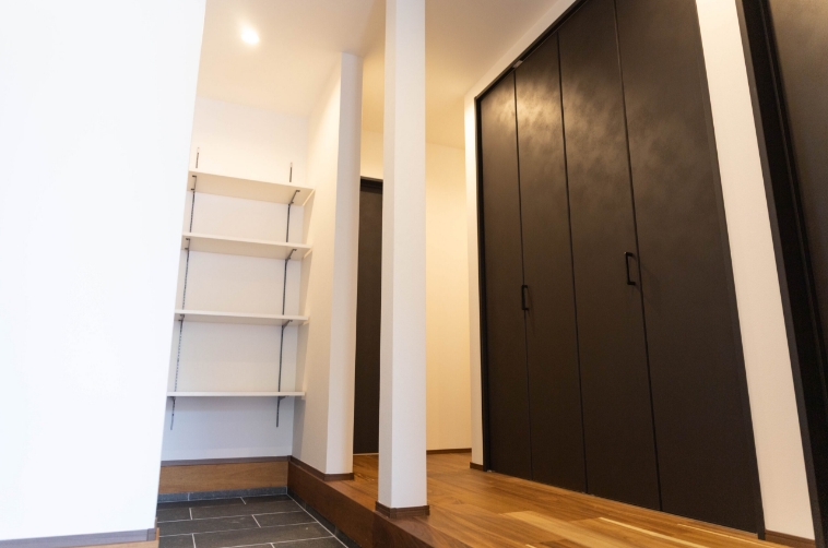玄関を入ると、ゆったりとした土間続きのSICがお出迎え。ベビーカーやアウトドアグッズなど、大きな荷物もそのまま置ける便利なスペースです。“ただしまう場所”ではなく、外と内をやさしくつなぐ、暮らしの余白のような空間になりました。